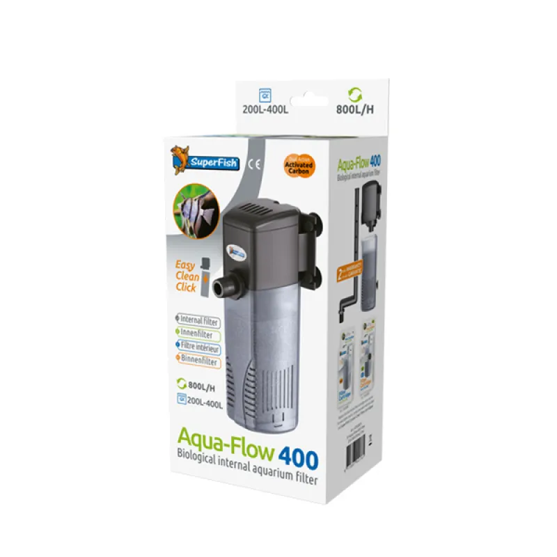 De superfish aquaflow 400 is een middelgroot binnenfilter en is ideaal om middelgrote aquaria te filteren. De aquaflow filters zijn makkelijk te installeren en de filterpatronen zijn makkelijk te vervangen.