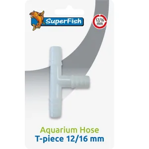Slang verbindingsstuk T-stuk 12/16 mm voor betrouwbare verbinding van aquariumslang. De koppeling is gemaakt van nylon en is daardoor minder breekbaar dan versies van hardere kunststoffen. Door de verdikte rand zit de slang goed vast aan de koppeling.