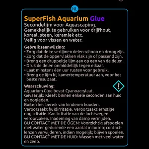 Aquarium Glue bevat Cyanoacrylaat (secondenlijm).