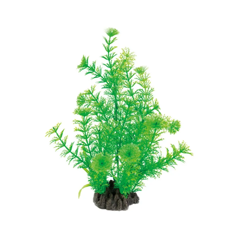 Met deze kunststof cabomba op rots kunt u eenvoudig uw Aquarium inrichten. Druk de basis van het ornament in het aquariumgrind en beweeg het heen en weer totdat deze stevig in het grind staat. De planten en rotsen zien er realistisch uit en zijn 100% veilig voor uw vissen en het aquarium ecosysteem.