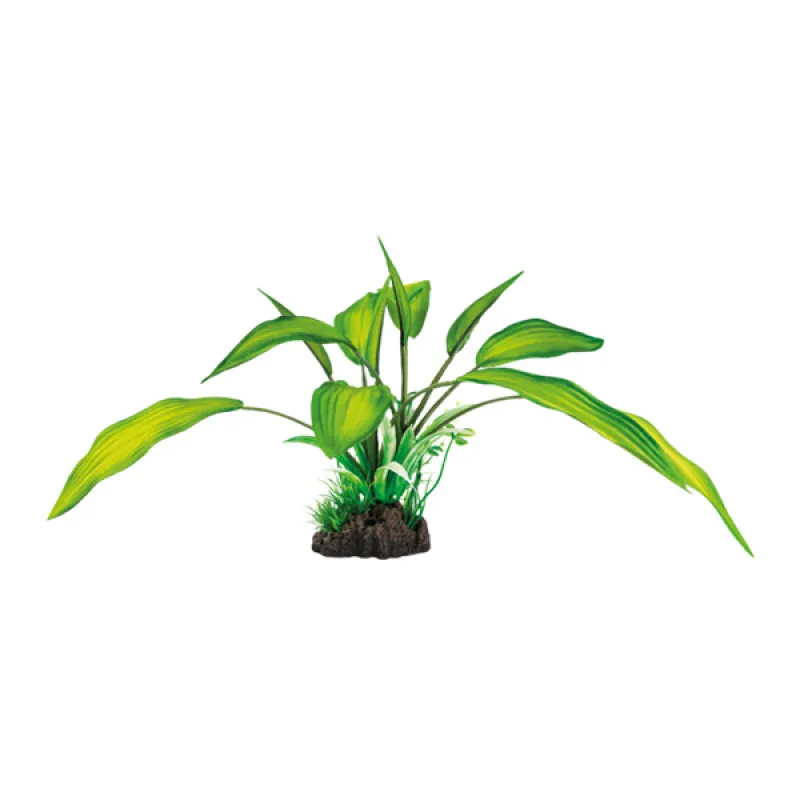 Met deze kunststof cryptocoryne op rots kunt u eenvoudig uw Aquarium inrichten. Druk de basis van het ornament in het aquariumgrind en beweeg het heen en weer totdat deze stevig in het grind staat. De planten en rotsen zien er realistisch uit en zijn 100% veilig voor uw vissen en het aquarium ecosysteem.