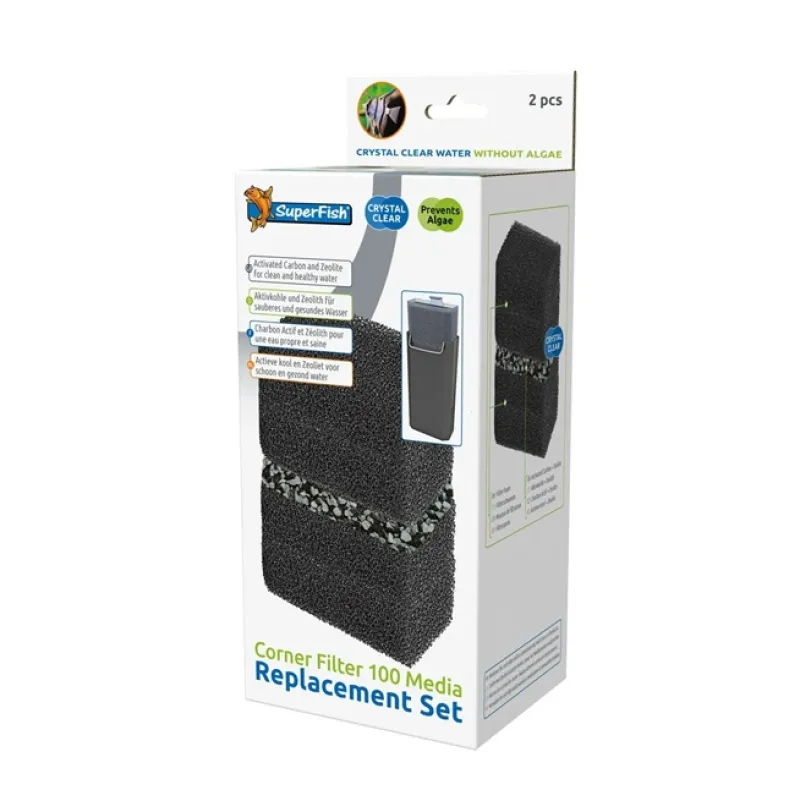 Vervangset met sponzen en filtermedia voor de Superfish QubiQ 30 en Quadro 40 aquariums. Hiermee vervangt u handig en snel de bestaande inhoud van de plastic media houders voor nieuwe sponzen en media.