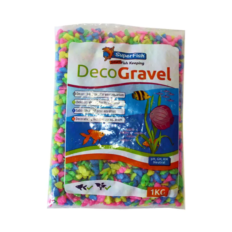 Zeer kleurrijk decoratief grind in 1 klio verpakking voor kleine aquaria. Het grind is 100% veilig voor de vissen en planten. Leverbaar in meerdere opvallende kleuren. Voor gebruik met lauw water afspoelen.