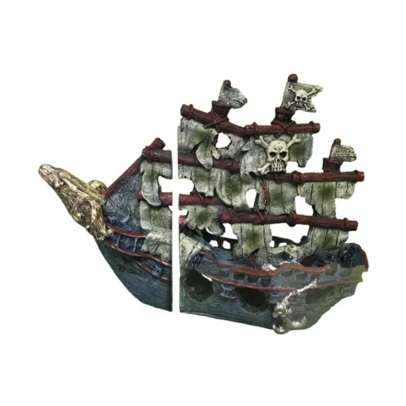 Scheepswrak decoratie in 2 delen met magneet. 1 deel kunt u buiten het aquarium plaatsen met de andere helft binnen het aquarium.