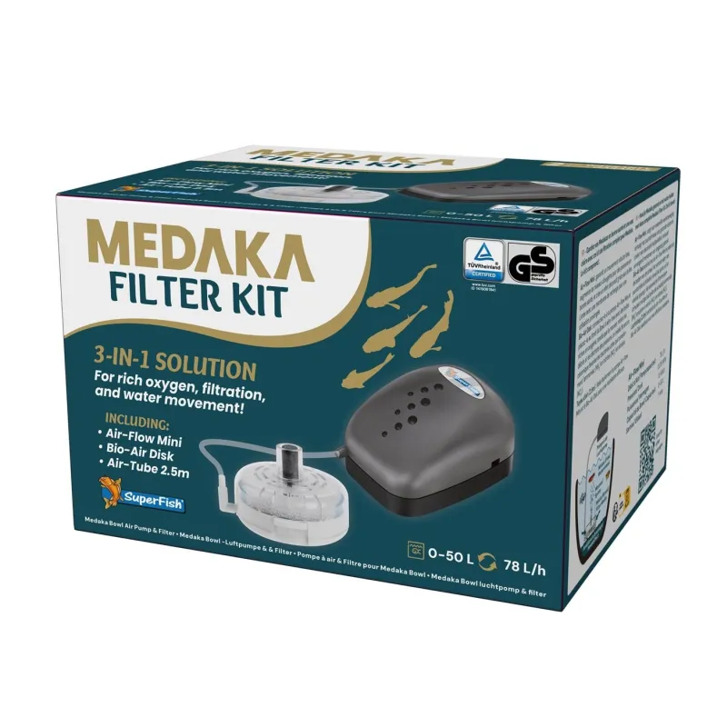 Houd uw medaka gezond en het water helder met deze medaka filterkit. Speciaal ontworpen voor de superfish medaka bowl 420. De kit bestaat uit: