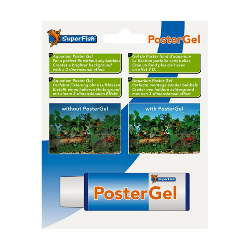 PosterGel is een speciale vloeistof om de posters op het aquariumglas aan te brengen zonder luchtbellen. Creëert een heldere achtergrond met een 3-dimensionaal effect.