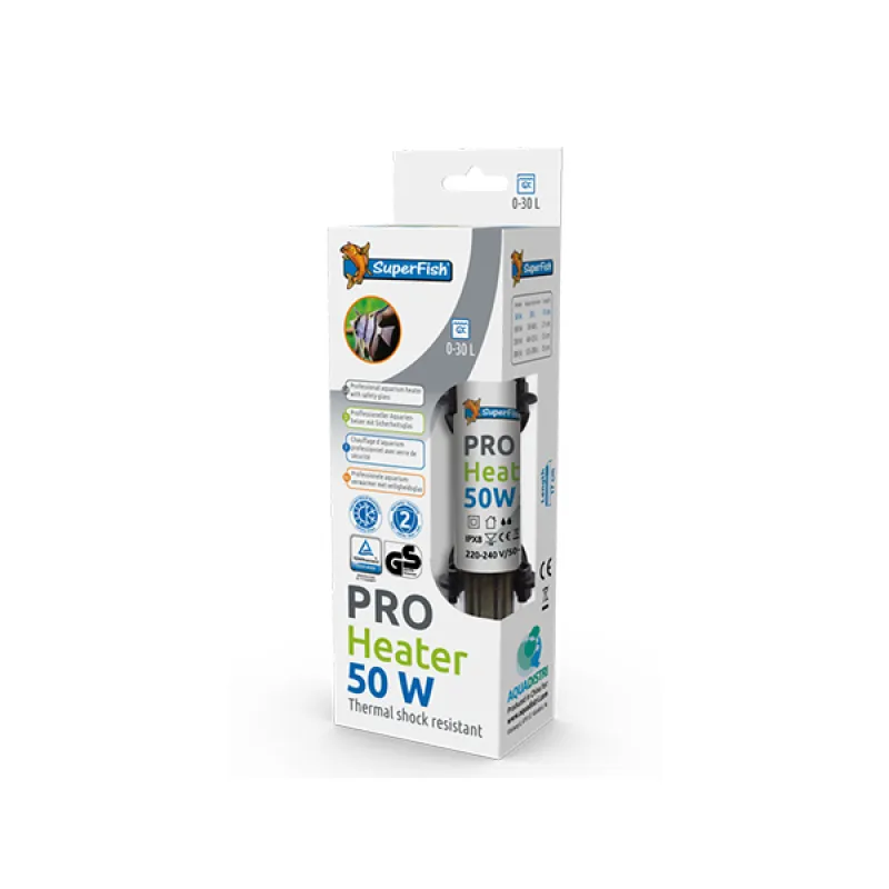 Professionele aquariumverwarmer met Thermisch-schokbestendig borosilicaat veiligheidsglas. Door een beter soort glas t.o.v. de Superfish eco heater is de verwarming beter bestand tegen temperatuur schokken door bijvoorbeeld droogvallen tijdens verversen.