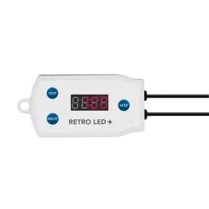 Controller voor Retro LED verlichting, schakelt de verlichting automatisch aan en uit op de gewenste tijden. De Retro LED+ Controller simuleert zowel zonsopkomst als zonsondergang, u heeft de keuze om dit in 30 seconden te laten verlopen of in 10 minuten. De Retro LED+ controller is geschikt voor alle Retro LED verlichtingen, met uitzondering van Retro LED Multi.