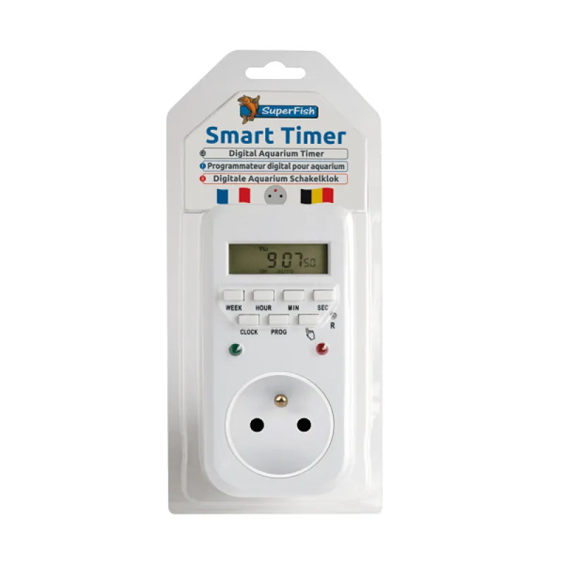De Smart Timer is een digitale tijdschakelklok om uw aquarium-apparatuur op de gewenste tijd in en uit. Ideaal om uw verlichting te regelen zodat deze niet te lang brand en ook gewoon werkt als u op vakantie bent. De tijdschakelaar kan per week of per dag geprogrammeerd worden