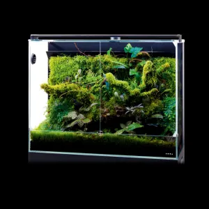 Een pluspunt is de uitneembare Mistflow-box, waarin een vernevelaar zorgt voor een fijne waternevel. Een geïntegreerde pomp houdt het waterniveau constant. Een Circulatieventilator 40 kan worden gebruikt om de luchtstroom in het paludarium te regelen, cruciaal voor een gelijkmatige vochtverdeling en de gezonde ontwikkeling van epifytische plantensoorten zoals orchideeën.