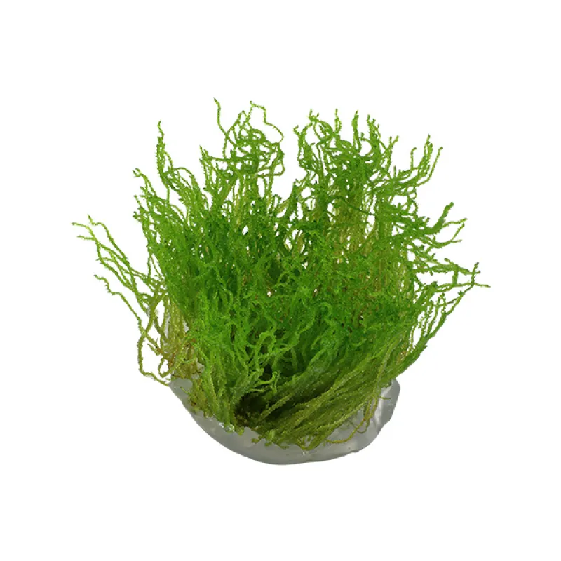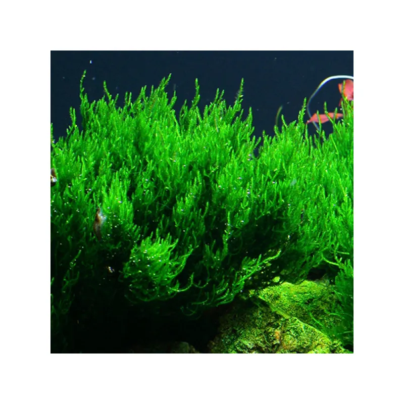Taxiphyllum sp. Flame Moss is een sierlijke mos soort die makkelijk groeit op stenen en hout. Het is goed te bevestigen met bijvoorbeeld Moss cotton.