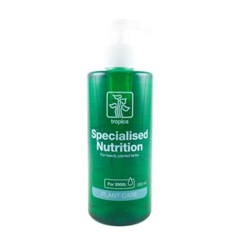 Tropica Specialised Nutrition plantenvoeding voor aquaria met een kleine visbezetting. De dosering van 6 ml per 50 liter aquariumwater 1x per week is makkelijk te doseren met de doseerpomp (2ml per pompje). Dit zorgt voor een gezonde plantengroei.