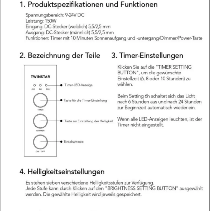 De originele LED dimmer van twinstar heeft de volgende functies;