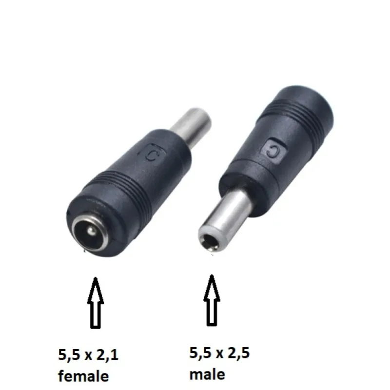 Aansluiting; Female 5,5 x 2,1 naar male 5,5 x 2,5