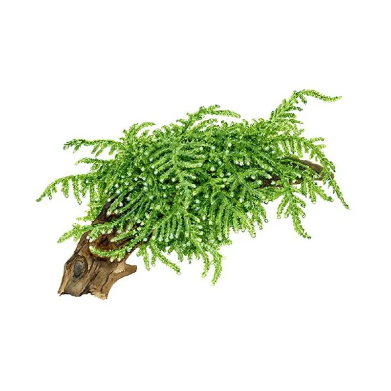 Vesicularia dubyana "Weeping" mos is een sierlijke mos soort die makkelijk groeit op stenen en hout. Het is goed te bevestigen met bijvoorbeeld Moss cotton.